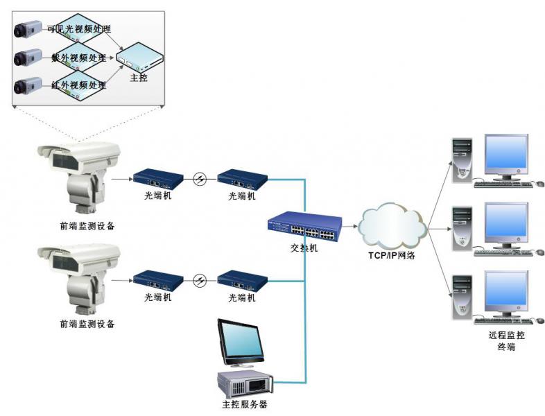 系統(tǒng)可實(shí)現(xiàn)對紫外、紅外和可見光圖像的遠(yuǎn)程傳輸和監(jiān)控, 超溫、電暈超標(biāo)報警提示。通過遠(yuǎn)程對攝像機(jī)控制,預(yù)制定位,遠(yuǎn)程切換,自動巡視等。能夠支持多場所的中央監(jiān)控,不受地理限制,多個用戶可同時監(jiān)控同一前端,發(fā)生異常自動抓拍,同時自動啟動錄像機(jī),具有很好的兼容性及可擴(kuò)展性。提高運(yùn)行人員對設(shè)備缺陷的識別能力和預(yù)見性。