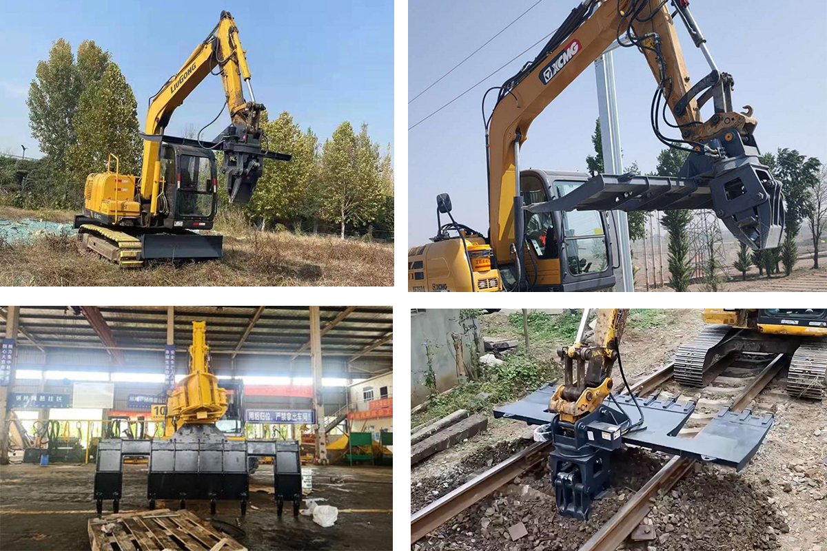 軌枕更換裝置通過(guò)安裝座與挖掘機(jī)臂的前端連接,安裝簡(jiǎn)單;機(jī)械化手段開挖回填道碴,可降低開挖回填道碴的勞動(dòng)強(qiáng)度,降低投資成本;軌枕夾緊裝置,可進(jìn)一步降低拔出舊軌枕和嵌入新軌枕的勞動(dòng)強(qiáng)度和操作時(shí)間。