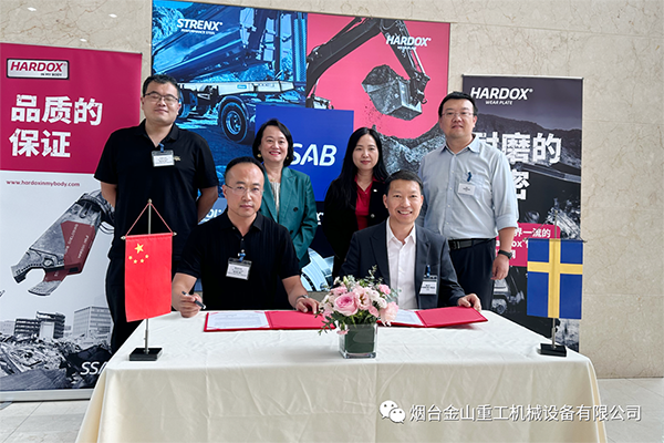 2023年10月12日,金山重工在SSAB回收利用行業(yè)技術(shù)交流與研討會上,與SSAB簽署了合作協(xié)議,正式加入Hardox® In My Body全球品牌計劃,成為煙臺市第一家獲得瑞典鋼鐵奧克隆德有限公司Hardox悍達(dá)鋼授權(quán)資格的企業(yè)。